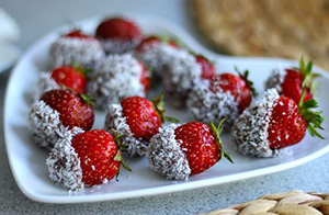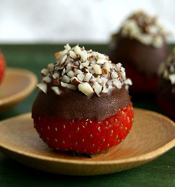 2. Растопите шоколад. Окуните каждую ягоду в шоколадную глазурь примерно на треть.
