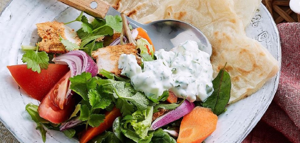Салат из курицы Тандури с огурцово-йогуртовым соусом