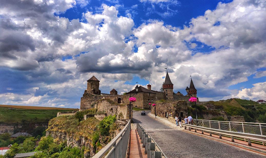 Але з озером розтаватися не хотілося, тому зійшовши з пароплава, знайшов зручне місце, щоб полежати десь на травичці біля берега. Перед тим, ще гуляючи по місту, зробив де-які фотографії. Хоча у Тернополі я вже був не вперше, але, як відомо, кожного разу відкриваєш щось нове, що минулого разу не бачив. Потім пішов на вокзал, сів у потяг і їхав приблизно півтори години. В Хмельницький прибув вже в ночі і одразу ж пішов шукати місце де розмістити палатку. Через годину мені вдалося знайти зручне місце в міському парку. Розклав тент та й ліг спати. Якщо чесно, то було страшно. Проте, як солодко було просинатися зранку, хоча і спав на твердій землі. Прокинувся о 7 годині, одягнувся, вмився, поїв. Потім зібрався і пішов за місто стопити машини. Тут з автостопом було гірше. Йшов десь години дві, так і не зловивши жодного транспорту. Надоїло. Зупиняю автобус і їду до Кам'янця- Подільського. Приїхавши я був трохи неприємно здивований новим містом. Однак, старе містечко було дуже гарне та чисте, з цікавими, покрученими вуличками та старими будівлями. Але найбільше мене цікавив Кам"янецький замок, який я хотів побачити вже давно. Фортеця виглядала казково, вона приманювала до себе і мені дуже сподобалась. Я підійшов до замкового мосту і зробив ряд фото. Ця стародавня фортеця відома ще з чотирнадцятого століття. Хоча дата не точна, так як є відомості, що замок почали будувати ще в одинадцятому столітті. Фортеця стоїть на острові, який омивається каньоном. З містом вона з"єднана вузьким старовинним мостом, який прокладений по вузенькій скелі. Фортеця потужна, була побудована для захисту від набігів татар. Свого сучасного вигляду ця фортифікаційна споруда набрала десь в столітті шістнадцятому.