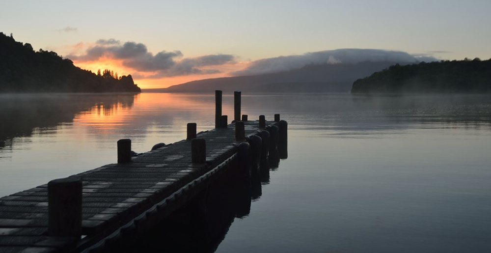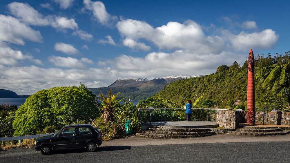 После Роторуа, мы движемся на юго-восток в очаровательный край озер, рек и чудесной природы. Дорога проходит через сплошной тоннель бушующей зелени, которая непроходимой стеной нависает вдоль дороги на протяжении всего нашего путешествия. Изредка над зеленым покрывалом леса мелькают могучие горные вершины. Они то выглядывают из-за деревьев, то потом исчезают в той же самой зеленой листве. Путь в самое сердце озерного края не очень длинный и вот за каких-то десять-пятнадцать минут прямо перед дорогой, открывается голубая гладь озера. Это озеро Тикитапу или как его еще называют Голубое озеро. Дорога упирается прямо в берег и изящно огибая его очертания, направляется на юг. Природа расцветает во всем своем великолепии, а озеро стыдливо, как будто непорочная дева, прячется среди зеленых гор, изредка украшенных красивым ожерельем экзотических пальм. И вот только позади осталось это очаровательное бирюзовое озеро, как буквально через минут пять такого же увлекательного путешествия по благоухающим жизнью тропическим чащам, сквозь пальмы и папоротник выглядывает снова озеро и не менее красивее предыдущего. Green lake, или на маорийском наречии Ротокакахи. А там немного дальше и другие озера. Недаром это озерный край. Ведь здесь, куда не глянь, всюду озера, такие очаровательные и такие притягивающие. Буквально на полпути между Зеленым озером и озером Тарауэра, в четырнадцати километрах от Роторуа, прямо над дорогой разместилась, или скорее прилепилась к подножью горы "Похороненная деревня". Несколько домиков, в которых хранится трагическая история, рассказывающая о судном дне этой красивой и многострадальной земли. Сегодня это туристическая достопримечательность, а когда-то здесь жили маори и европейцы. Деревня Те Вайроа была основана в 1848-ом году миссионером Сеймуром Спенсером, а погибла, засыпанная пеплом и магмой, в 1886-ом году. Но мы минуем "Похороненную деревню" и движемся дальше, а дорога тянется в том же самом зеленом туннеле, продолжая удивлять проезжающих свежестью и насыщенностью окружения. И вот, озеро Тарауэра-самое большое из всех озер в этой местности. А дальше за ним, на восточной его стороне, подымается среди бело-сизых облаков, не очень высокая, но довольно длинная вершина горы Таравера-ныне дремлющий монстр, принесший когда-то столько бед, страданий и разрушений этой чудесной стране. Гора видна издалека на всем пространстве западной части озера. Но как-то все внимание, уходит от этой горной вершины, а взгляд поневоле рыщет по спокойной глазури, до боли в глазах всматриваясь в нависшие над озером облака. Не плывет ли где-то там призрачное каноэ, переправляя своих ужасных пассажиров в неведомое лоно Матери Земли. Но нет, этого предвестника беды на озере не видно.