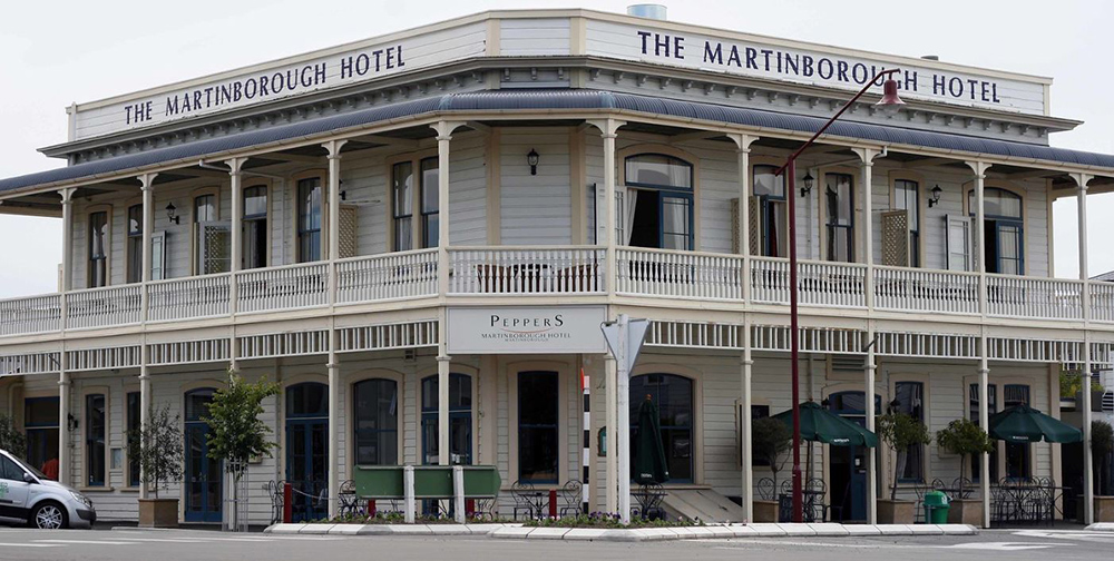Город Мартинборо был основан во второй половине девятнадцатого века политиком и землевладельцем ирландского происхождения Джоном Мартином. Он был известен тем, что за всю свою четырнадцатилетнюю карьеру в Законодательном совете выступал только четыре раза и за это его прозвали молчаливым членом. Наверное личные интересы этого слуги народа были более важные общенациональных. Ну что поделаешь, такое бывает. Как видно, такие депутаты были всегда, а не только в нашей стране. Но город Джон Мартин все таки создал, на своих землях и этот город был назван его именем. Улицы были заложены так, что их расположение напоминало флаг Союза. Многие улицы были названы именами городов в которых побывал Мартин. И поныне в городе сохранились Дублин-стрит, Оксфорд-стрит, Кембридж-стрит, Нью-Йорк-стрит. Даже есть свой Бродвей, правда он ничем не напоминает настоящий Бродвей и даже Бродвеи-клоны, которые существуют во многих городах и не только Новой Зеландии. Это простая, довольно длинная улица, с простыми одноэтажными домиками, упирающаяся в виноградник. В центре города заложен мемориальный сквер, от которого лучами в разные стороны расходятся ровные улицы. В Мартинборо много старинных зданий колониальной эпохи. Все бережно ухожены, выкрашены в красивые светлые тона, а некоторые находятся под охраной государства. Очень красивый, например, пятизвездочный отель-старое, двухэтажное строение, в самом центре города. Между прочим, количество таких старинных домов являются отличительной чертой города Мартинборо.